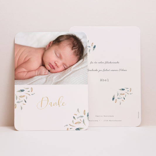Dankeskarte Geburt Porträt, abgerundete KantenFedern AquarellNormaler Preis ab 1,66 €