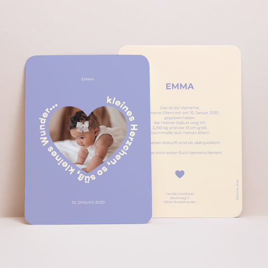 Geburtskarten Porträt, abgerundete KantenKleines LavendelherzNormaler Preis ab 1,31 €
