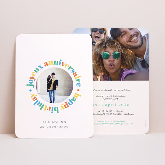 Einladungskarte Geburtstag Porträt, abgerundete KantenRunde Männer mehrfarbigNormaler Preis ab 1,31 €