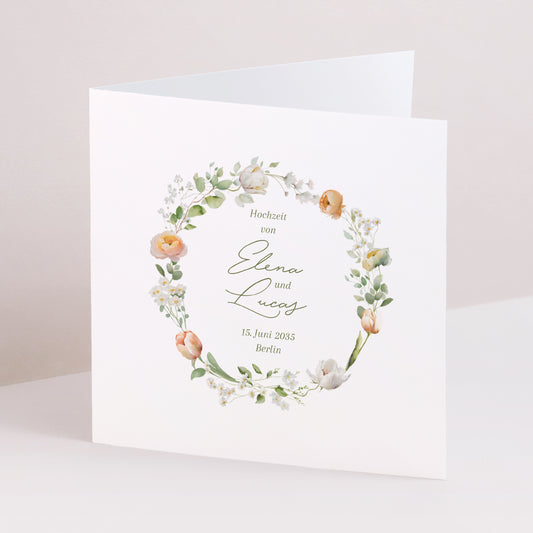 Hochzeitseinladung DoppelflügelfensterRomantischer BlumenkranzNormaler Preis ab 1,49 €